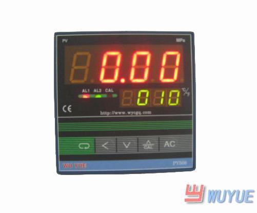 Wuyue's PY208 series intelligent melt pressure indicators are high performance intelligent pressure measuring and controlling instrument, this product adopted double deck 4 nixie tube to display actual pressure value and set point separately, also has alarm for upper and lower limit and output by relay contact, alarms come with constant voltage or constant current output, linear output analog quantity (like 4-20mA or 0-10V.0-5V) can be connected to PLC or other controllers. The system adopted automatically panel adjustment, that makes system calibration can be easily done by pressing one button. Photoelectric isolated technology, software filter technique and watchdog circuit is adopted to ensure stability and reliability; switching power supply makes this product can work under low voltage of 120V. Wuyue's PY708 series intelligent pressure gauges are the best substitutes of those expensive world class like products, also can be compatible with sensors of output 3.3mv, 2mv, 4mv, 1.5mv.