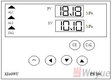 When PW206 is in working state, user presses CAL key, PW206 starts to adjust automatically. At the same time, user presses “⌒” key till adjustment is finished. PW206 will store the adjusted value. (CAL key and “⌒” must be both pressed till adjustment is finished.)