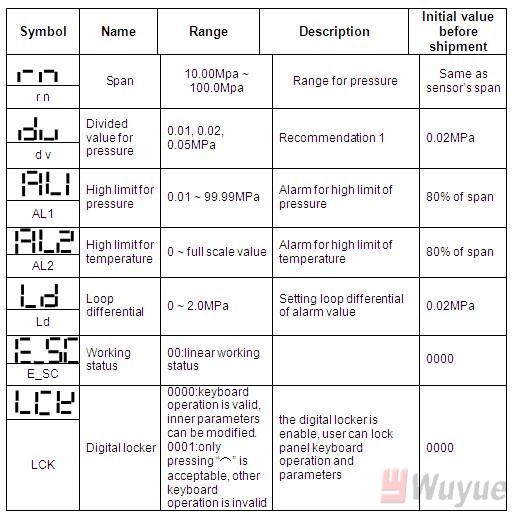 In working state, press the “⌒” key for five seconds, and then the inner parameters can be modified.